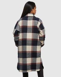 Get wrapped up in the cozy durability of our long plaid jacket. Made from organic cotton, this classic button-up is your perfect companion for all your fall adventures.