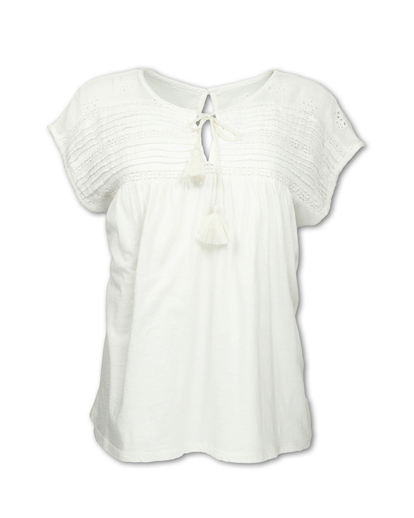 - Contrast woven eyelet shoulder panel